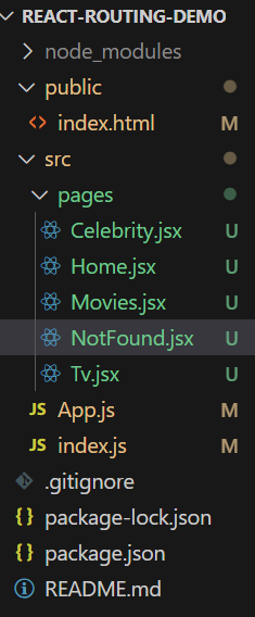 react-router-dom 의 BrowseRouter, Routes, Route 컴포넌트 구성하기 Link 컴포넌트와 useNavigate Hook을 이용한 페이지 전환 화면 헤더 구성 -> 내부 바의 아이템마다 각각에 맞는 페이지 전환 가능!! 잘못된 URL 입력 시, not found 출력 영화 페이지에서 각각의 영화 포스터 클릭 시, 영화 상세 페이지 구현 1. CRA project 생성 npx create-react-app react-routing-demo 2. 화면 전환을 위한 Routing 처리 -> 필요한 화면 생성 pages 폴더 생성 후 Home, Movies, Celebrity, NotFound, Tv pages 생성 3. App.js 에서 routing 작업 진행 - routing..
